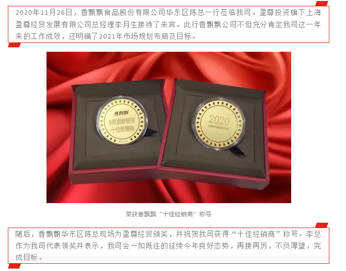 盈尊經貿榮獲東鵬特飲2020年“銷售貢獻獎”